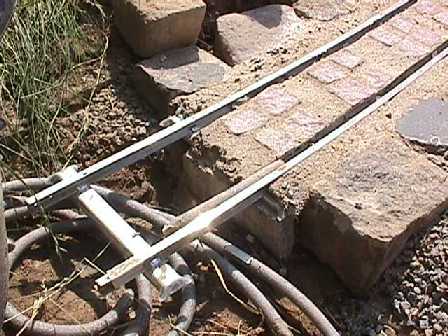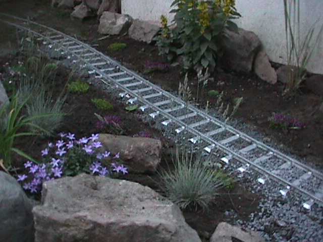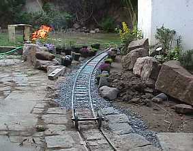 Zuerst wurde ein Graben ausgehoben und dort die Gleise mit alten Wegplatten